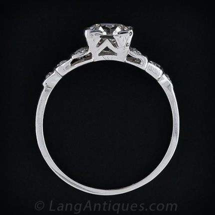 Sparkling diamond steps lead up to a glistening 1.00 carat European-cut diamond in this classic and sophisticated Art Deco classic from the 1920s with milgrain details and a hand-engraved ring shank. Sparkle!