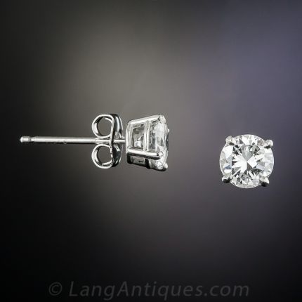 A bright and shining pair of perfectly matched, high-color, high-quality, round brilliant-cut diamonds, together weighing 1.16 carats, are minimally set in platinum to capture the light from every direction. Simply sparkling classics.