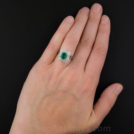 1.86 Carat Emerald Platinum and Diamond Ballerina Ring