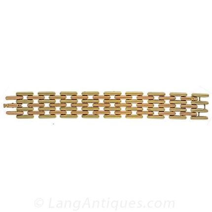 Dramatic, flexible Retro bracelet, consisting of yellow and rose gold, beveled bars. Beautiful condition.