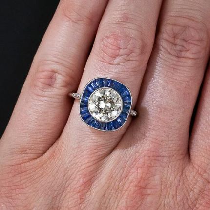 2.86 Art Deco Style Diamond and Calibre Sapphire Ring