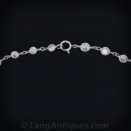 171 round brilliant-cut diamonds flash and sparkle with your every movement in this fabulous and fabulously versatile diamond and platinum neckchain. Wear it at full length and it evokes the 1920s flapper style; double it and you have a 27 inch (double) necklace; triple it and you have just shy of an 18 inch three-strand necklace. With the use of two jump-ring clasps, make it into a choker and opera length combo!