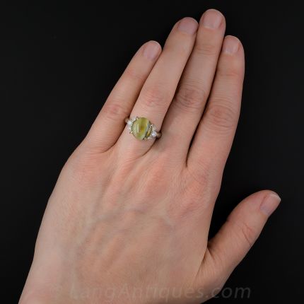 8.49 Carat Chrysoberyl Cat's-Eye Platinum Diamond Ring