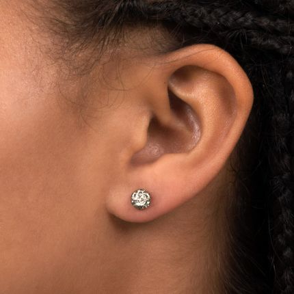 These delightful Edwardian era dazzlers, dating back to the first or second decade of the twentieth century, sparkle right and left with a pair of bright-white European-cut diamonds, together weighing .33 carat, effectively enhanced by illusion settings. Twinkle, twinkle. Hand fabricated in platinum over 18K gold.