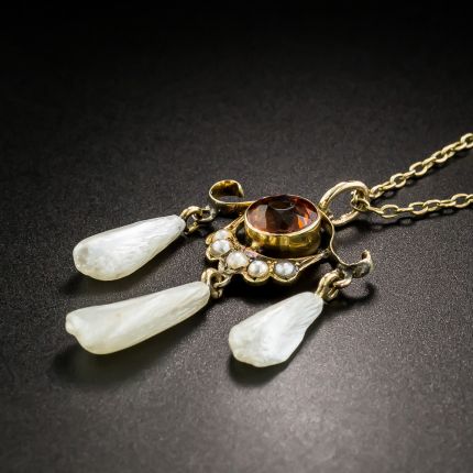 Antique Madeira Citrine and Pearl Necklace
