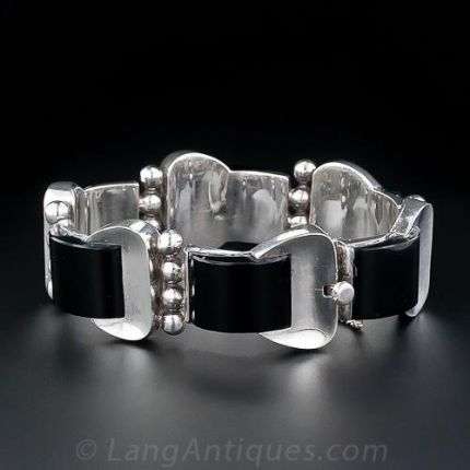 Antonio Pineda Mexican Silver and Onyx Link Bracelet