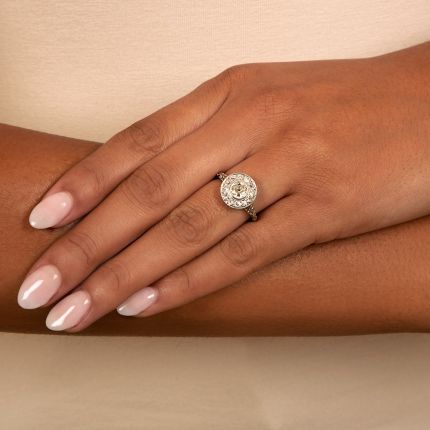 Art Deco .63 Carat Center Diamond Halo Ring - GIA I SI1
