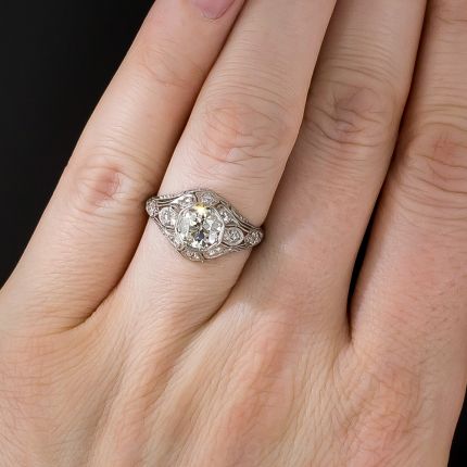 Art Deco .82 Carat Diamond and Platinum Engagement Ring