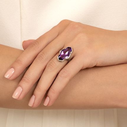 Art Deco Amethyst Cabochon Filigree Ring