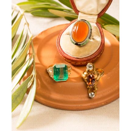 Art Deco Carnelian, Seed Pearl and Enamel Ring