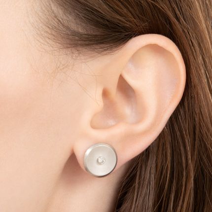 Sometimes, we like to switch things around—like these cool jewels. They were once a quite elegant pair of cuff links until we decided that they'd be better off as earrings. Crafted in platinum with a soft matte finish, the concave bevel-edged disks sparkle at their centers with round brilliant-cut diamonds and are ready to add a dash of Art Deco chic to your lobes. Circa 1920s-30s. Posts and backs are 14K white gold.