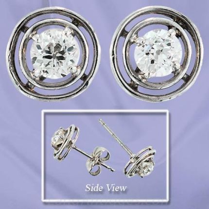 Platinum Deco diamond studs featuring two old mine cut diamonds (.50 carat total weight, H-J color, SI2 clarity) surrounded with a double halo border. These earrings measure 5/16 round.