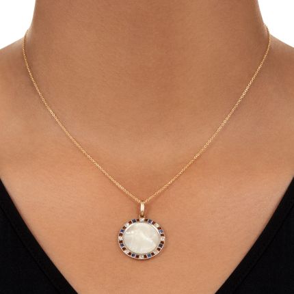 Art Deco Mother-of-Pearl Madonna Diamond and Sapphire Pendant