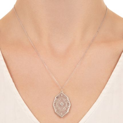 Art Deco Rock Crystal and Diamond Filigree Pendant