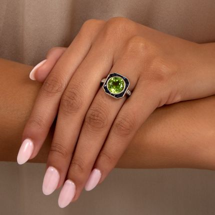 Art Deco-Style Peridot, Sapphire and Diamond Ring