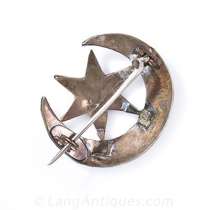 This original antique Bohemian Garnet crescent and star pin measures a tad over 1 1/4 inches across. Circa 1890.