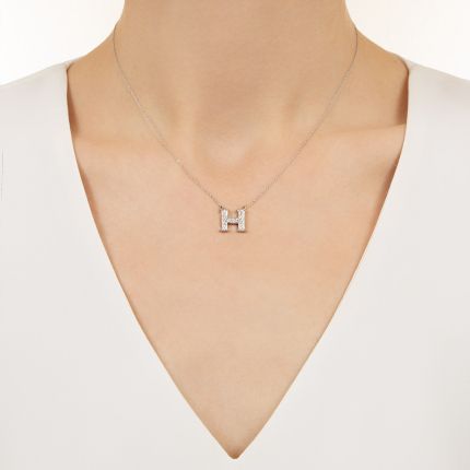 Whether your name is Henry or Hannah, it's always fun to give those outside your inner circle a small clue about you--and you might as well sparkle while doing so. This cool 'H' initial, hand fabricated in platinum, sparkles with 13 bright icy-white round diamonds and suspends from a fine 16-inch chain. By the way, 'H' is also for 'hip and high-spirited.' Total diamond weight, .30 carat. Cool fact: This initial was once part of a personalized name bracelet for the Hollywood actress Dorothy Hart, who, among other roles, was the 10th actress to portray Jane in the Tarzan movie, Tarzan's Savage Fury.