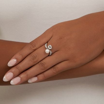 Edwardian 1.05 Carat Diamond and Natural Pearl Toi et Moi Ring - GIA J VVS2