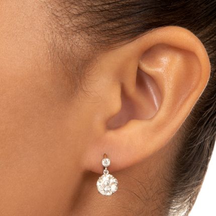 Edwardian 2.40 Carats Diamond Drop Earrings
