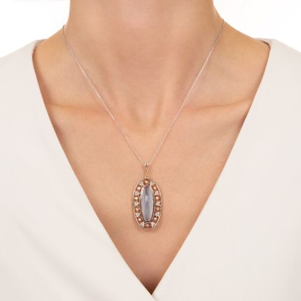 Edwardian Moonstone, Seed Pearl and Diamond Necklace