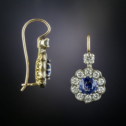 Edwardian Style 1.32 Carat Total Weight Sapphire and Diamond Earrings