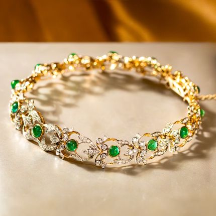 Edwardian-Style Cabochon Emerald and Diamond Bracelet