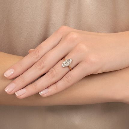 English Edwardian 18K Diamond Navette Ring