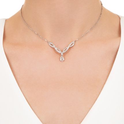 Interwoven ribbons of glittering single-cut diamonds culminate in a beautifully proportioned, bright-white and sparkling pear-shaped diamond, weighing 1.01 carats, in this timeless and eminently wearable estate treasure from the latter 20th century. The centerpiece is supported by a complementary chain that measures 15 1/4 inches. Crafted in 14K white gold. Total diamond weight, 1.42 carats. Accompanied by a GIA Diamond Grading Report stating: H color - I1 clarity.