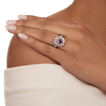 Estate 1.44 Carat Purple Sapphire and Diamond Halo Ring