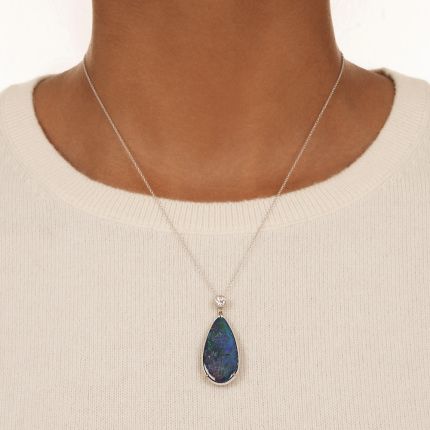 Estate 15.59 Carat Pear-Shaped Boulder Opal And Diamond Necklace
