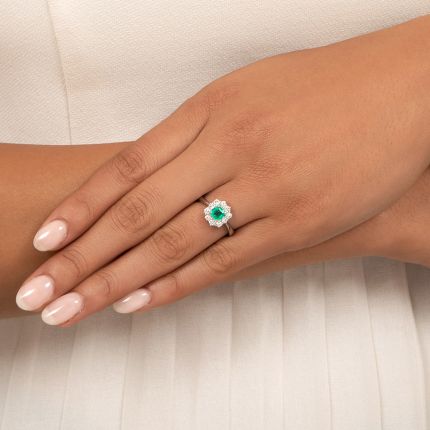 Estate .50 Carat Emerald and Diamond Cluster Ring