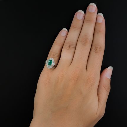 Estate .90 Carat Emerald and Diamond Ballerina Ring