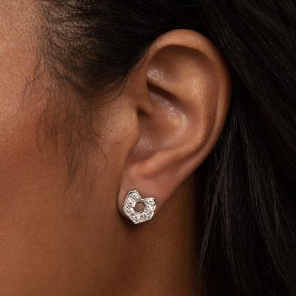 Is there anything sexier than a scintillating sweep of diamonds around your neck? We think not. This ultra-chic and elegant estate choker necklace sparkles all around with 44 geometric links set with 308 dazzling white, high-quality round brilliant-cut diamonds. Accompanied by a pair of stud earrings that can be worn alone or with the necklace on those days--or nights--when you want a low-key matching option. Your new glamour go-to. 15.00 carat total diamond weight. In luminous platinum, it measures 15 inches.