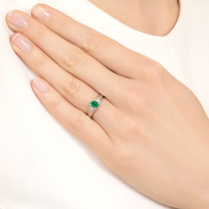 Estate Emerald and Diamond Baguette Ring