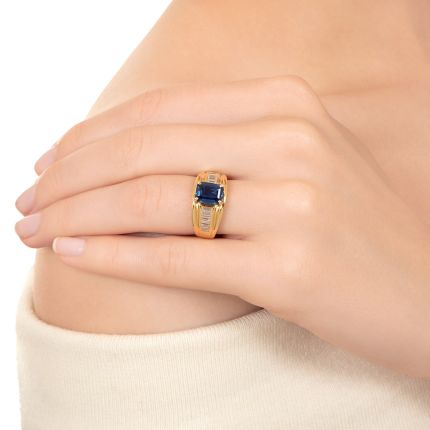 Estate Emerald-Cut Sapphire and Baguette Diamond Ring