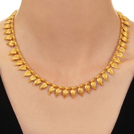 Estate Gold Leaves Fringe Necklace