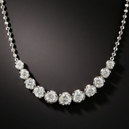 Eleven gently graduated bright-white round brilliant-cut diamonds, together weighing 2.00 carats, create a second sparkling smile just below yours in this simply stunning estate necklace rendered in gleaming platinum. 16 inches.