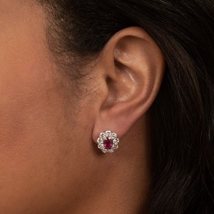Estate No-Heat 2.13 Carat Total Weight Ruby and Diamond Halo Earrings