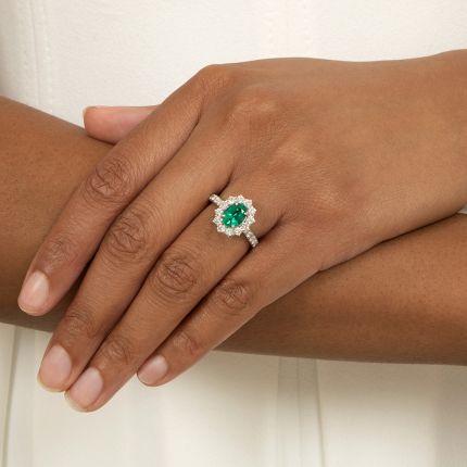 Estate Oval Emerald and Diamond Halo Ring - GIA