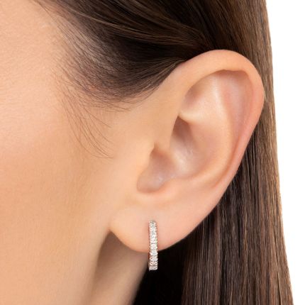 We love cool unconventional combos here at Lang--like these head-turning eardrops. A chunky pair of bright robin's egg blue ceramic beads (dead ringers for turquoise) dangle from small hoops frosted on their fronts with shimmering round brilliant cut diamonds, creating a nifty duo of color and sparkle. For a bit of extra motion, small black bezel-set single-cut diamonds dance around below. Total diamond weight, .50 carat. In 18K white gold.