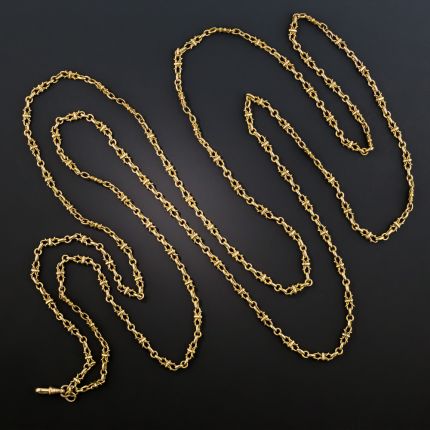 From early-20th-century France - five-feet-two-inches (!) of fancy link chain to wear doubled, tripled, of full flapper length. C'est chic!