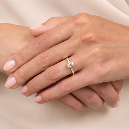 We have distilled and refined the enduring elegance of early-20th-century styles to newly present original vintage diamonds in our own line of vintage-inspired engagement rings using 100% recycled precious metals and conflict-free diamond melee. In the case at hand (and perhaps on yours!), we present a beautiful, bright and shining old mine-cut diamond, weighing .92 carat, in our updated version of a classic Victorian solitaire. Crafted in 18K gold, the scintillating stone is held by eight sculpted prongs between glittering diamond-set shoulders. Understated elegance par excellence. Total diamond weight, .98 carat. Accompanied by a GIA Diamond Grading Report stating: K color - SI2 clarity. Currently ring size 6 1/2.