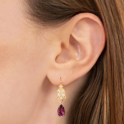 Lang Collection Laurel Leaf Diamond and Grape Garnet Drop Earrings