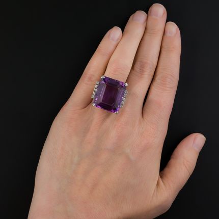 Large Amethyst and Diamond Platinum Cocktail Ring