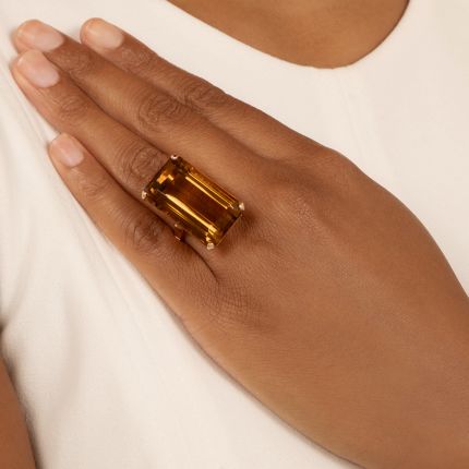 Large Retro/Mid-Century Citrine Rose Gold Ring