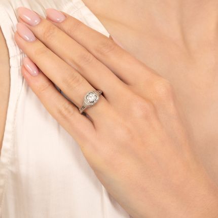 Late Art Deco .15 Carat Filigree Diamond Engagement Ring