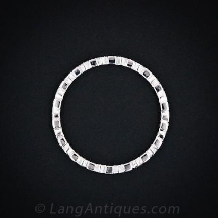 This is an super skiiny micro diamond band in 18 karat white gold. Tiny round brilliant cut diamonds are set in alternating square and diamond shapes finished with milgrain details. This band would be perfect by itself or fun to stack with a few bands! We can special order this band in your size. Please allow 4-5 weeks for delivery. Price is subject to change.