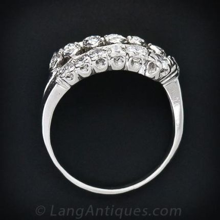 This fanciful diamond sparkler caresses your finger with marquise, baguette and round diamonds artfully arrayed in a graceful flowing design. A distinctive and stylish vintage diamond ring, circa 1950s.