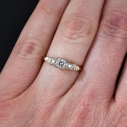 Mid-Century Two-Tone .18 Carat Diamond Engagement Ring