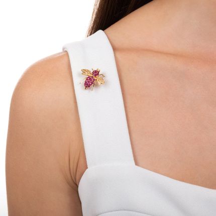 According to entomologists, golden ruby bees are among the rarest of the species. Add some buzz to your lapel. 14K yellow gold. Total ruby weight, .90 carat.